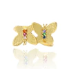 ANEL DUAS BORBOLETAS COM ZIRCÔNIAS COLORIDAS - BANHADO A OURO 18K